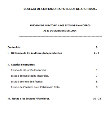 El colegio de Contadores Publicos de Apurimac pone a consideracion de los miembros de la orden los estados financieros auditados correspondiente al ejercicio economico 2024 https://drive.google.com/file/d/1dNhbgy-aPnFpYP5U6KoGrOOA2QZGBI1h/view?usp=sharing