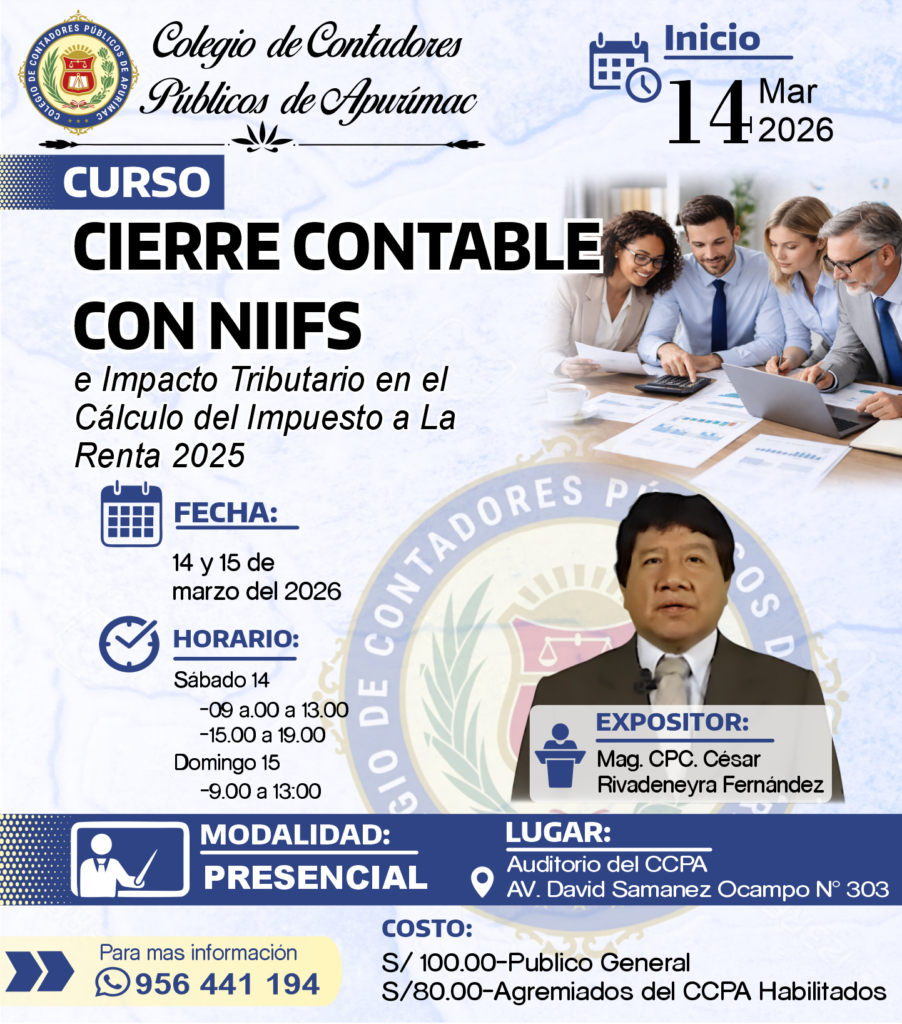 Curso: «Cierre contable con NIIFs e Impacto tributario en el cálculo del Impuesto a la Renta 2025»